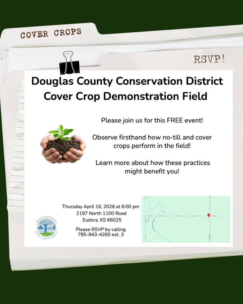 Curious about cover crops? Come see them in action! The Douglas County Conservation District is hosting a FREE event at the Cover Crop Demonstration Field to explore how no-till and cover crops perform in real field conditions. This event is a great chance to learn how these practices can improve soil health, reduce erosion, and benefit your operation.